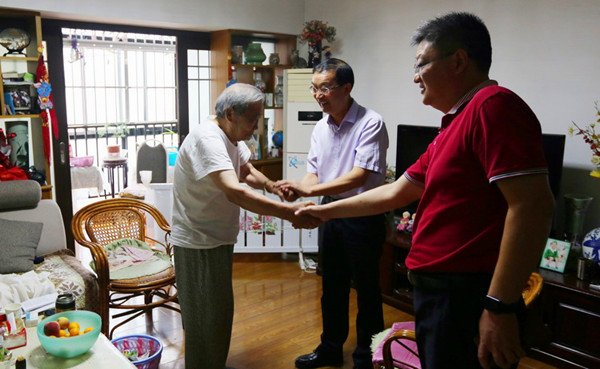 7月1日上午,工投集團總經理胡建明、總會計師匡友本一行來我公司看望慰問老黨員,為他們帶去了節日的祝福,并送上慰問金。公司黨委委員伏運余陪同慰問。