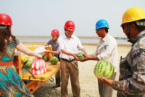7月28日,公司副總經理盧明生、袁慶國、工會主席王志軍深入基層一線和施工現場,為奮戰在高溫下的職工送去西瓜、綠豆、白糖等慰問品,同時也送去了公司領導的關懷,使一線職工倍受鼓舞。