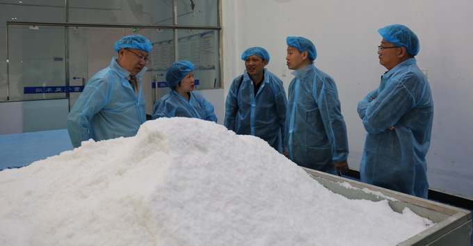 伍茂輝一行參觀了公司雪花鹽車間、包裝鹽車間、加工鹽車間,詳細了解了我公司鹽產品產銷情況;雙方就加強合作事宜進行了洽談,雙方商定在鞏固原有業務合作的基礎上,在進一步加強雪花鹽和顆粒鹽等產品的市場開拓方面加強合作交流。(金宣)