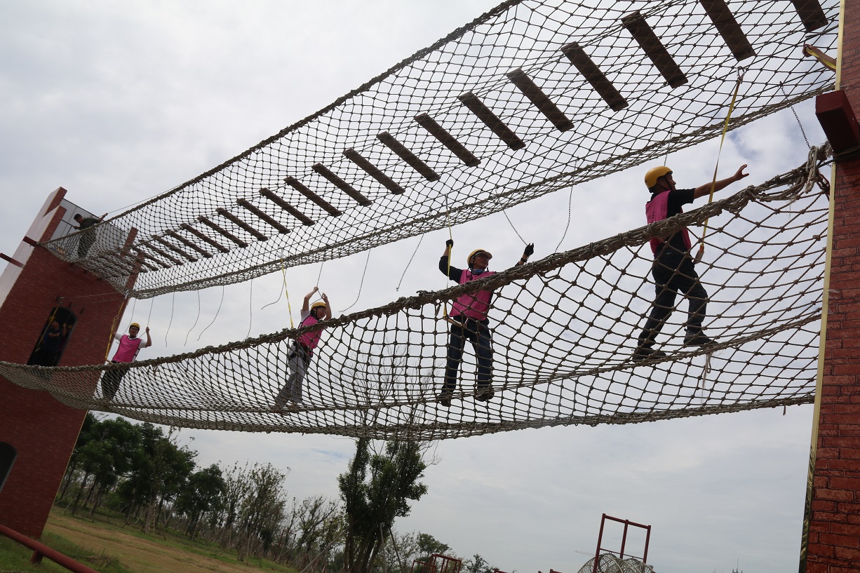接著,四個小組先后體驗了“強渡大渡河”“飛奪瀘定橋”等紅色實景教育項目,使廣大職工體會到當年紅軍長征的艱苦環境,感受了重走長征路的氛圍,增進了職工之間的團隊友誼、鍛煉了隊員勇于挑戰的堅強意志。
