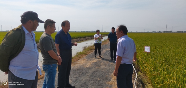 924日中午,江蘇省農業科學院蘇北科技服務中心主任楊四軍研究員一行到大新農場察看優香粳”水稻的生長情況,與農場負責人及條田工就優香粳當前生長情況及生長后期的注意事項提出了指導性建議。優香粳是由省農科院提供的優質稻米品種,曾在2018年上海優質稻米品鑒會獲金獎。(劉 楊)