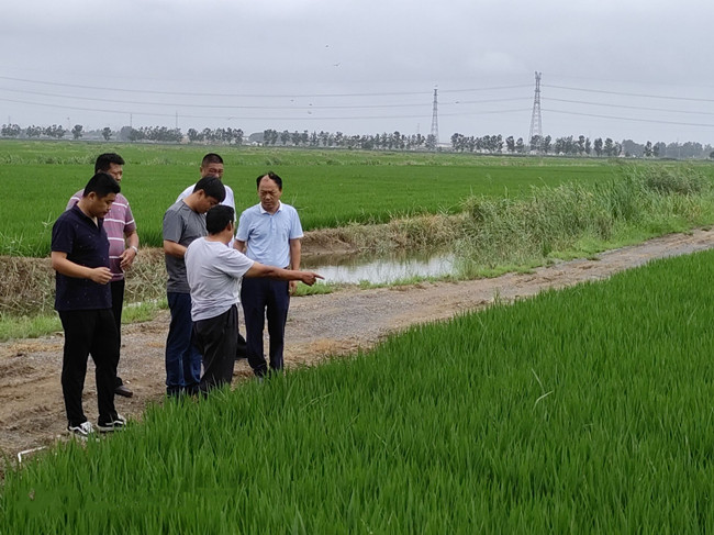 管理人員和農技師深入田間地頭,對我們基本苗的苗情苗量、病蟲害情況進行水稻中期生產檢查,對下一步的水漿管理和病蟲害防治提出指導意見,要求早防早治,適時擱田。
