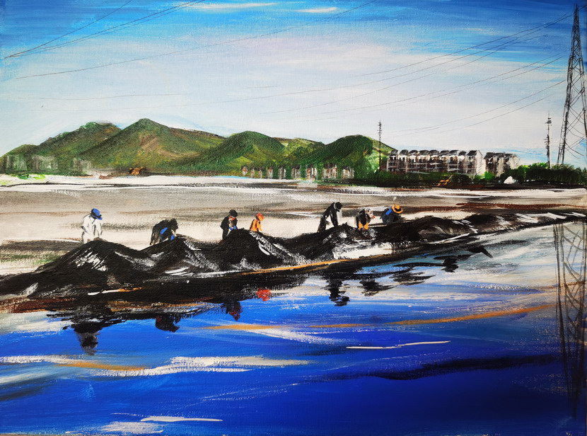 在這個屬于黨員的節日,我們脫下華麗的衣裳,全副裝備到達東灘,男同事們穿上水靴拿起鐵锨下到溝里,溝里淤泥已經漫過了腿肚,女同事三五成群撿垃圾,抬浮板……背灼炎天光,力盡不知熱,在火熱的太陽下,我們頂著一身如雨的汗水,只為能在熱火朝天的奮斗中,給彼此一份清涼的懷念。