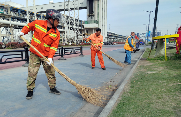 保潔保障“步調一致”。為完成徐新路、徐圩大道、海濱大道等石化園區多條道路保障任務。130余名保潔先鋒輪流轉,每日清掃輔道路修剪石楠等樹葉雜草落葉路線1500清洗站臺座椅40余個、清掏果皮箱130余個、轉運生活垃圾300打包轉運商鋪垃圾150余車,為保障節日期間道路保潔鍥而不舍。